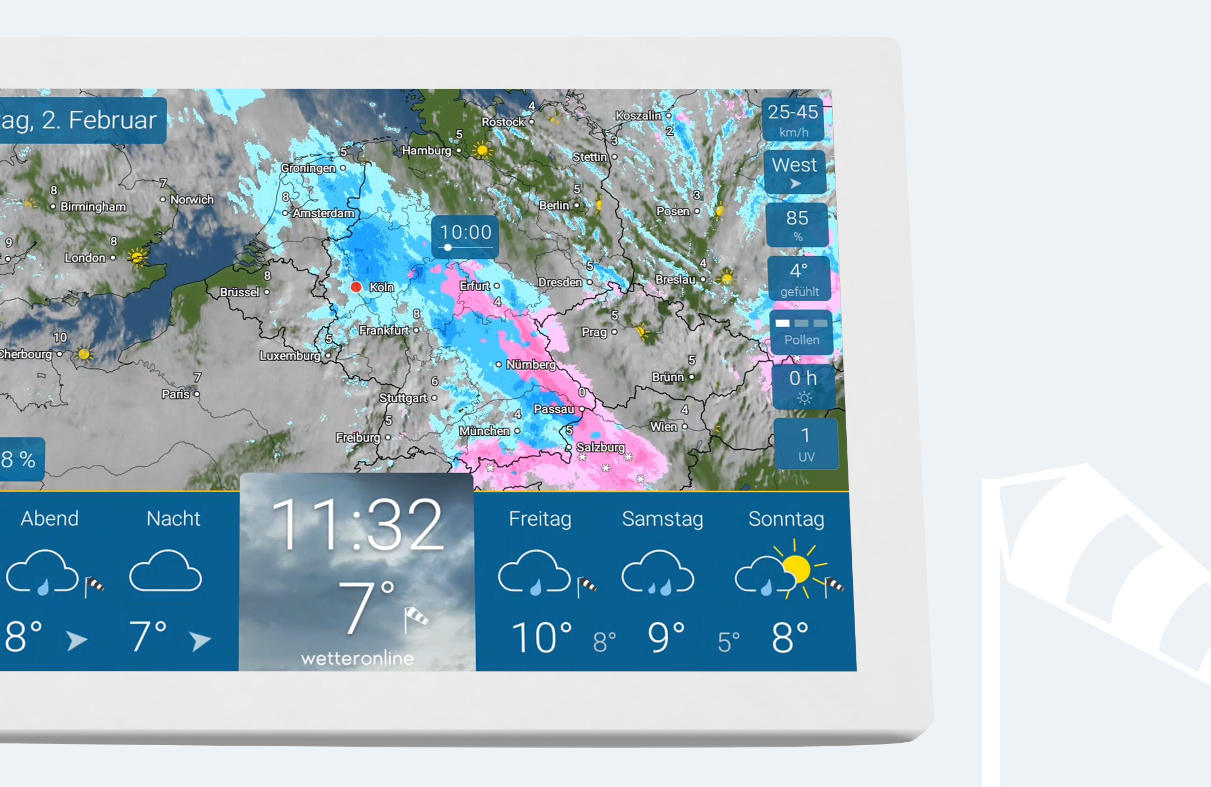 wetteronline home 3 ist für den Dauerbetrieb konzipiert. Individualisierbare Nutzungszeiten, automatisches Abrufen der Wetterdaten und Installieren von Softwareupdates machen die WLAN-Wetterstation von WetterOnline besonders benutzerfreundlich. Die neusten Informationen zum Wetter sind stets auf einen Blick zu sehen und helfen bei Ihrer Tagesplanung.