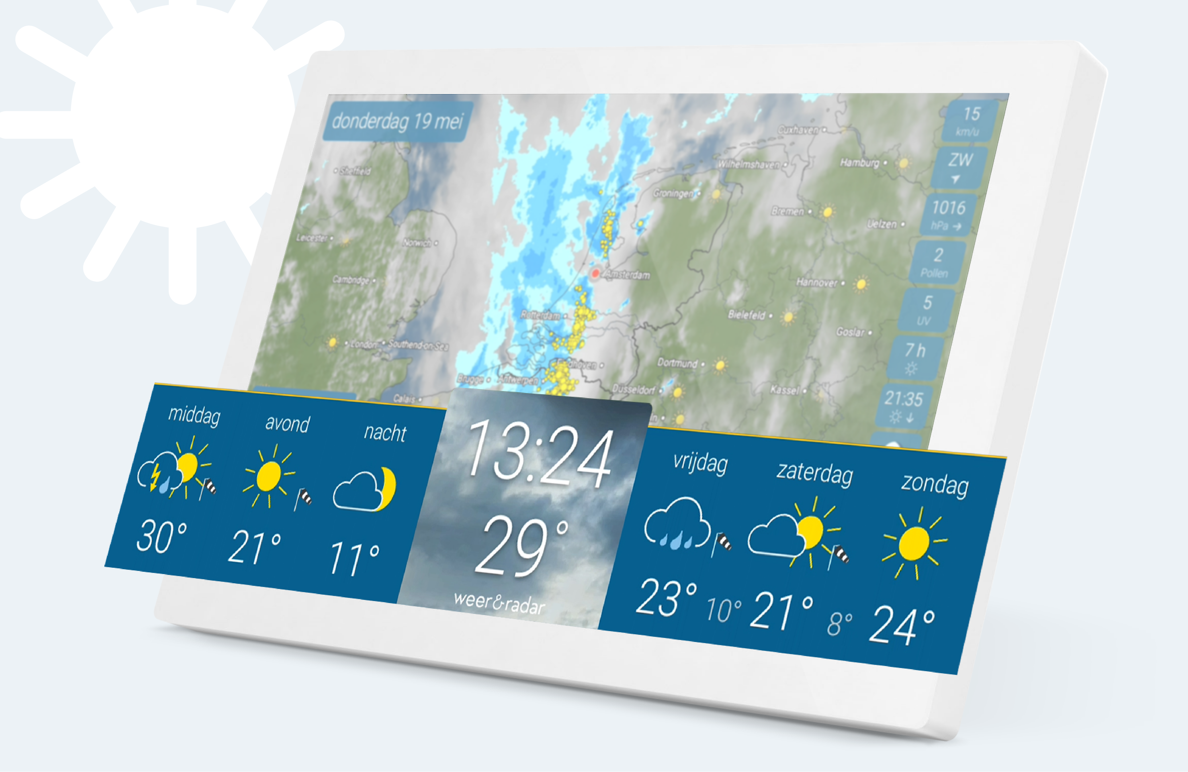 In het onderste schermgedeelte ziet u links het weer gedurende de dag en rechts en de weersontwikkeling voor de komende dagen.
