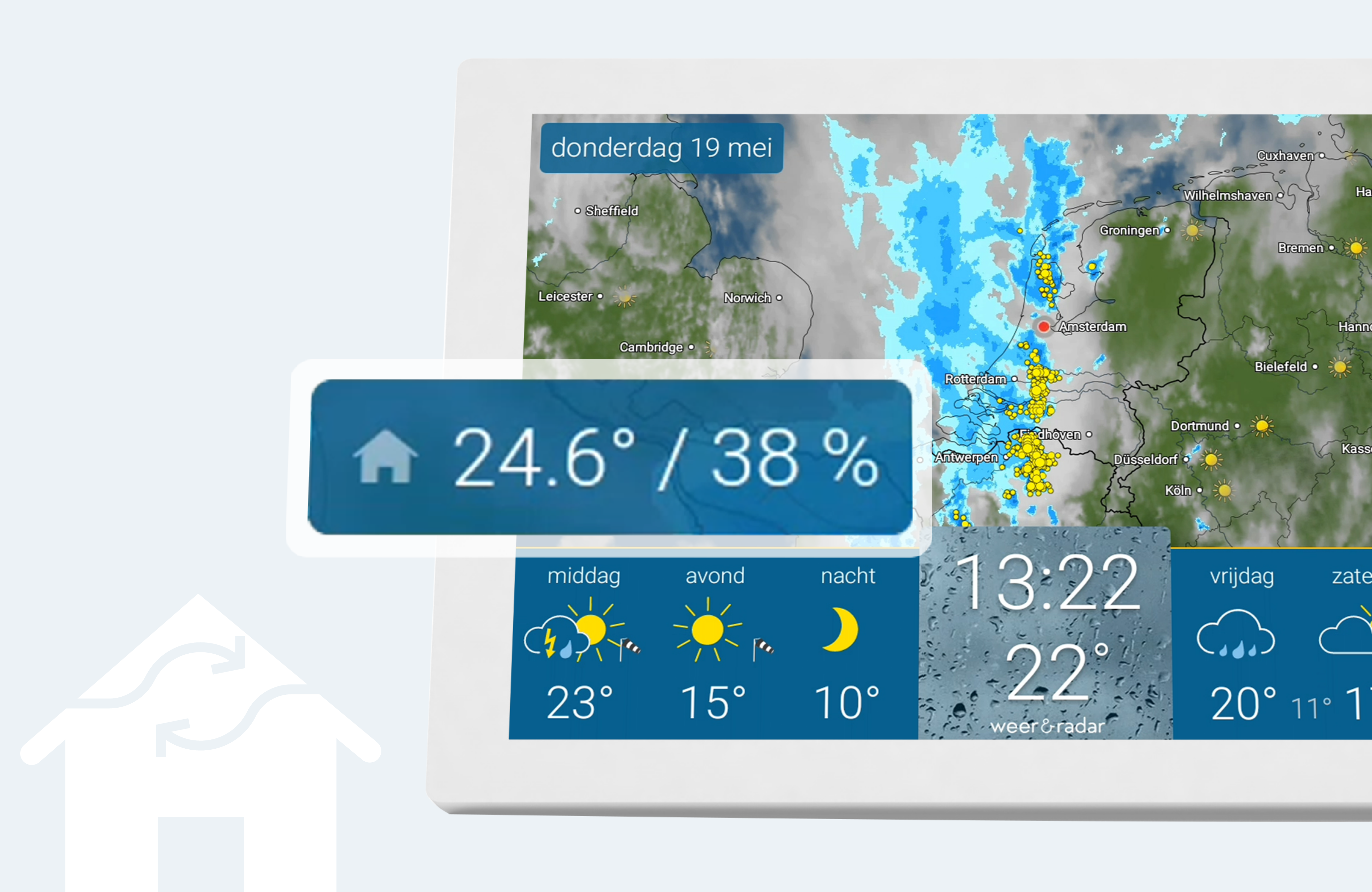 Een in het station geïntegreerde binnensensor meet de temperatuur en luchtvochtigheid. Deze informatie helpt om het binnenklimaat te controleren en de temperatuur efficiënt te sturen.