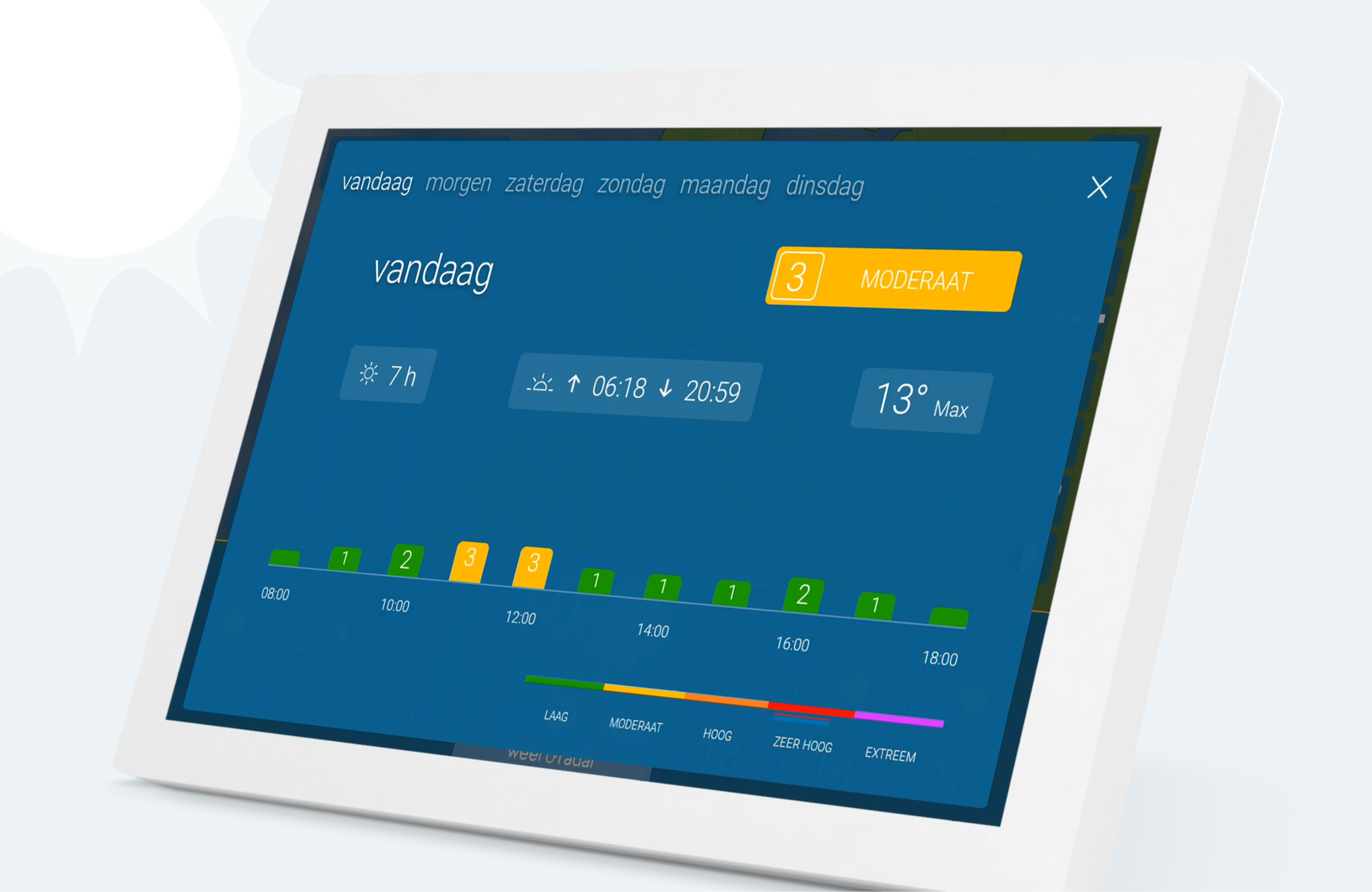 De nieuwe binnensensor draagt bij aan een prettig klimaat in huis. De informatie over temperatuur en luchtvochtigheid kan bijvoorbeeld helpen bij efficiënt verwarmen en ventileren. Voor mensen met een allergie is er nu nog meer gedetailleerde informatie over de pollenbelasting en een pollenkalender beschikbaar. Deze maken de planning voor zowel de korte als de lange termijn eenvoudiger. De UV-index wordt nu niet alleen voor de actuele dag weergegeven, maar ook voor de komende zes dagen. De niveaus variëren van “laag” tot “extreem” en geven een indicatie van welke maatregelen nodig zijn om uw huid te beschermen tegen schadelijke UV-straling.