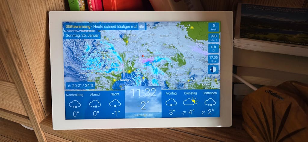 - Meteo sempre a portata di mano – grazie al supporto da parete appositamente sviluppato